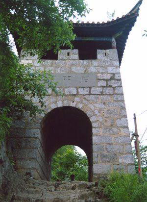 石门,就是五尺道进入云南盐津后第一道“锁钥南滇,咽喉西蜀”的天险雄关,它位于盐津县西南二十一公里处,关河北岸的悬崖上。历史上又称豆沙关。峭壁上有唐袁滋题名摩崖。1963年修建风雨亭保护,现为国家级第三批重点文物保护单位。