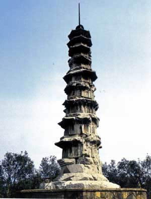 白塔位于钱塘江畔,小巧玲珑,别具风格,为五代吴越国晚期建筑物,通高16米,塔基占地面积约400平方米,八面九层,实心,楼阁式仿木结构。基座刻山峦起伏、江海翻腾纹,寓意“九山八海”。其上九层,均由塔身、塔檐、平座三部分组成。塔身每面转角处都雕有圆形倚柱,收分明显,柱头卷杀,中间有两根柱,分每面为3间;其中4个壁面为明间,辟壶门,雕出实榻大门、门钉和金环铺首。塔壁四周遍刻佛像,或7尊、5尊、3尊,或为经文。佛像雕造精细,比例有度,形象生动优美,安详慈善。塔檐雕出椽子、飞子、筒瓦板垄,檐口刻出勾头和滴水。翼角有老梁、仔角梁和脊饰。平座有栏杆,现已不存在。整座塔挺拔优美,雕刻精美细腻,是吴越古都的宝贵文化遗产。著名建筑学家梁思成曾对白塔做过考察,他以为,白塔“与其称之为一座建筑物,不如称之为一座雕刻品,或一件模型”。