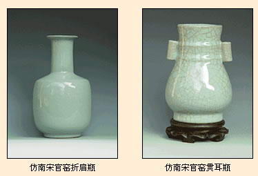 第三部分为《古瓷新葩》,荟萃国内仿古瓷的一批精品,有官窑、哥窑、汝窑、钧窑、越窑和建窑的现代仿制品,系国内有关科研、生产单位在继承传统工艺的基础上,运用现代技术精心制作的,反映了当今人们对传统陶瓷文化的弘扬和发展。