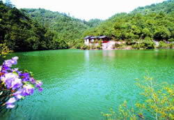 西径山水体景观摇曳 多姿,尤以百米飞瀑为胜,山顶有湖称奇。双林湖、碧云湖、琴湖为代表的西径三湖,自然天成,积翠流银,徜徉于群山环绕之中,水色终年碧绿如玉,坐船悠游其上,顿觉超然世外。有趣者如琴湖,湖如其名,仿佛一张优美的巨大竖琴藏之名山,荡漾于碧波,真地便能听到湖水的悦耳琴声和大自然的天籁之音在酬唱相和。