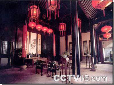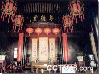 这是边厅,它的结构为双层结构,冬暖夏凉,是张家用来接待一般客人用人,这几幅书法是张静江题,其中这幅“铁肩担道义,棘手做文章”是送给陈立夫的(此字幅套现在陈立夫台北的私人客厅里)。大厅总面积达624.8平方米。