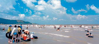 度假区面积为10.12平方公里,依山傍海,林木葱郁,风光秀丽,以“松翠、滩长、礁美、石奇、寺古”而闻名。该区山海兼容,蓄积了丰富的自然、人文资源和独特的佛教文化。这里群山起伏,森林延绵,大海浩瀚,岛礁点缀,又兼具享有“南方北戴河”之美誉的海滨浴场。区内名胜古迹众多,人文景观颇具影响。1997年被国家林业部批准为国家级森林公园,1998年浙江省人民政府批准为省级旅游度假区。