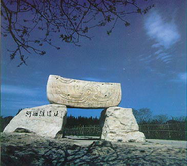 河姆渡遗址发现于1973年,遗址总面积达4万平方米,叠压着四个文化层。经测定,最下层的年代为7000年前。通过1973年和1977年两次科学发掘,出土了骨器、陶器、玉器、木器等各类质料组成的生产工具、生活用品、装饰工艺品以及人工栽培稻遗物、干栏式建筑构件,动植物遗骸等文物近7000件,全面反映了我国原始社会母系氏族时期的繁荣景象。河姆渡遗址的发掘为研究当时的农业、建筑、纺织、艺术等东方文明,提供了极其珍贵的实物佐证,是我国建国以来最重要的考古发现之一,河姆渡遗址出土的文物曾多次出国展览,深深地震撼着整个世界。