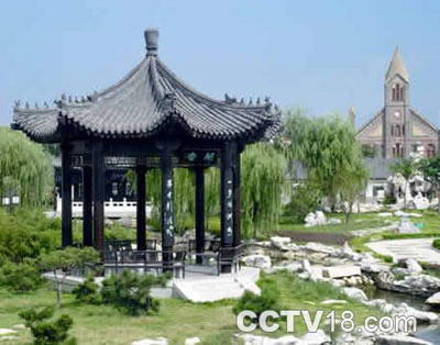 墓道前两侧一大片樱花林长得十分茂盛,这是日本友人相赠的,樱花林中还竖有青石镌刻的高大的《兰亭集序》碑,是日本天溪会所立。"永和九年,岁在癸丑,暮春之初,会于会稽,山阴之兰亭,修禊事也。群贤毕至,少长咸集。此地有崇山峻岭,茂林修竹,又有清流激湍……"