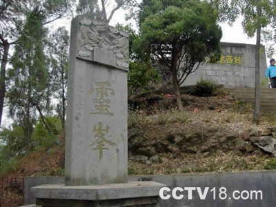 穿过洞天阁,随蜿蜒的石阶登上山峰,眼前豁然开朗。站在山顶俯瞰四周,群山起伏,村庄星罗棋布,秀丽的景色尽收眼底。只见山北坡陡峭壁立,山东面数百亩桃园含苞待放,可惜不是开花期,若是桃花盛开,则犹如进入陶渊明笔下的桃花源。山顶有座灵峰台,台上有巨石两方,一高一低形似纱帽,相传为帛道猷"礼拜石"。另一方是帛师对弈会友的棋盘石,石呈方形,表面黛黑色,平整光沉。这两方巨石重数吨,是天然的,还是人工抬上150米高的山顶的?至今仍是个千古之谜。瞻山更令人称奇的是,漫山遍野要找到一块石块比登山还难呢!