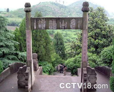 瞻山素称剡西第一山,位于崇仁镇廿八都东面,山势奇峻,削尖有山峰直刺云天,故亦称"尖山"。瞻山山清水秀,古松参天,一片苍翠。瞻山脚下,清清的溪水自北向南环山潺潺流过涤巾桥往笔架山汇入剡溪。横跨东西两岸的涤巾桥是进入瞻山风景区的唯一通衢,桥两侧的横栏板上有著名书法家顾庭龙书写的"涤巾桥"、"涤巾古涧"的题字,涤巾古涧的溪水发源在五龙潭白水坑瀑布。相传,东晋诗僧帛道猷曾在溪中洗涤衣巾,故名"涤巾"。跨过"涤巾古涧"桥,信步来到瞻山入口处,昂首瞻望,一座古朴的石牌坊朝南而立,牌坊上书有"名山福地"四个大字。一对石狮子喜滋滋地蹲伏在牌坊两侧,仿佛在迎接着来自四面八方的游客。穿过石牌坊,一条500多级的石阶盘往山顶。拾级而上,两边的古松郁郁葱葱,姹紫嫣红的花草,争奇斗妍,令人一饱眼福。