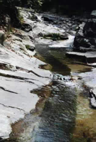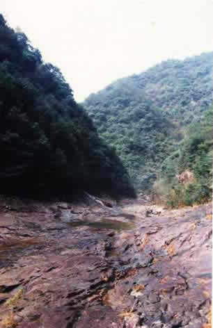 该次生阔叶林的面积约为3万多亩。由于海拔高度不同,气候条件不一,林木分布层次清晰。山顶有黑松,短叶松,金钱松,马尾松等高山树种。山腰有杉木,木荷,山刁樟等阔叶林树种,有成片的橡仁及映山红等灌木丛。下层有板栗,野桃,猕猴桃,柑橘等经济类作物。所产的“珍眉”“秀眉”茶叶为茶中精品。此外这里还盛产金银花,七叶一枝花,独叶一枝花等药材,是著名的药材生产基地。这里茂密的阔叶林中还生长着上百种野生动物。如山豹,野猪,狼,山兔,黄鼠狼、山鸡等,溪水中也生长着大量的野生鱼类,有溪鱼,娃娃鱼等。特别是溪中所产的香鱼,鱼身细长,香而不腥,被称之为鱼中精品。谷底是一条自上而下,自西向东的大岙坑,长30余里,终年泉水长流。坑中布满了鹅卵石,也有巨石,大小形状不一,色彩光泽各异,大小卵石长年累月经流水冲洗,光滑可鉴,形成了许多象形石。大岙坑最著名景点当数龙游涧,含珠潭和九叠泉。龙游涧涧底是一整块宽15米,长约100米的白色岩石,而中间底部宽约60公分,长约十余米的岩石,呈现黑色,形如龙鳞纹。据说是源头处龙潭内的湫水山龙游出去留下的痕迹。含珠潭系两巨石夹一块珠形卵石,水流只能在珠旁孔隙中通过,水势湍急,形成上下两个深潭,水深约三四米。九叠泉在龙游涧之上,泉水冲击形成一个个深潭,水深不一。大岙坑近源头有一潭,俗称湫水山第三龙潭,又名玉溪潭。潭上悬崖壁立,瀑布飞挂,俗称湫水白帘。沿潭而下有一段长百米,宽五米的山涧,其上山岩险峻,树木茂盛。