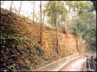 温州府城北傍瓯江,东西依山,南临会昌湖,周长18里,高3丈5尺,东晋太宁元年(323)始建,又名九斗山城、白鹿城和罗城。墙体砖石,四面有城门,外环护城河。明万历间增筑敌台,城门有七,即东镇海,南瑞安、永宁,西南来福,西北迎恩、永清,北拱宸。北宋、南宋、元、明、清、历经修缮。1930-1945年,因城市交通发展,陆续拆除。现仅存华盖山东北角约50米城基。