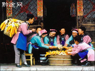 布依人用的茶叶都是自采自制,他们有时也上山去采和茶叶一样能泡开水饮用的其他植物,然后和茶叶一起进行加工,再加入一种名叫金银花的中草药,制成混合茶叶。这种混合茶叶的味道特殊,芬芳醇美,还具有清热提神的作用,泡出来的茶水是很好的饮料。
