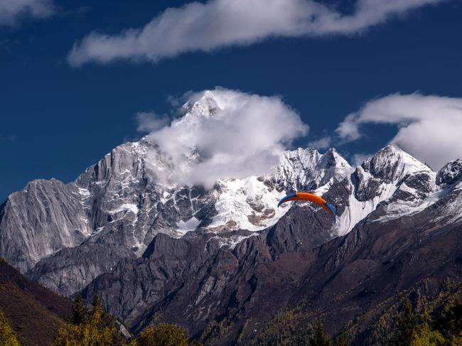 获奖者:李群国、元林朝、宋俊明三人团队,无动力滑翔伞飞越四姑娘山