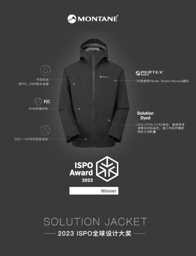 全球领先的户外品牌 Montane 宣布,将于 SS24 发布的 Solution Jacket 荣膺 ISPO 全球设计大奖。这一殊荣凸显了 Montane 在产品线中对卓越性能的追求和可持续责任的承诺。