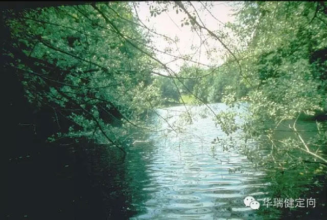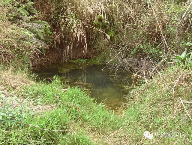 溪流的源头,有明显的水流涌出。符号的开口朝向水流方向。