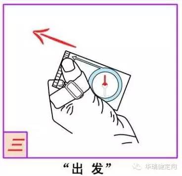 1、戴法:左手持握、控制指北针在身体前方腰部(齐腰)、水平放置。