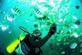 水肺潜水需要通过专业潜水训练,利用潜水气瓶及潜水器材 潜水是一项以在水下活动为主要内容,从而达到锻炼身体、休闲娱乐目的的新潮又刺激的休闲运动。 浮潜,自由潜水,......