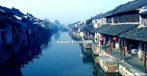梨花院落溶溶月,柳絮池塘淡淡风,说的大概就是西塘吧。水是西塘的灵魂,水让西塘恬静悠然,清新温润,这里到处都是水的影子。西塘的雨总是空空朦朦,斑驳的老墙凝重如墨,湿漉漉的青石板路蜿蜒伸向远方,清澈的池塘里,鱼儿追逐着岸边桃树落下的片片花瓣。带着浓浓的青草味的野风吹拂你的头发。老街宁静而从容,老人们在廊桥中抽着旱烟,拉着家常……夜色像墨汁一样浸染开了,沿河人家都点亮了临水的灯笼,那灯笼温暖且善解人意。在西塘,你不得不做的事有:听江南丝竹,看社戏,露天电影,品香茗。西塘的一些古屋顶上,长着近尺高的瓦草,据传是屋宅以前主人的魂灵附在了这些草上,使它们长得如此葱郁。